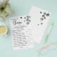 Flyer Eucalyptus Qué dice el novio Tarjeta de juego para