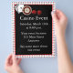 Un llamativo folleto para tu próxima noche de casino, viaje en grupo o fiesta. El diseño incluye cartas de juego, ruleta y dados con borde de palo de carta en rojo, negro y blanco. Fácil de personalizar con los detalles de tu ocasión.