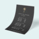 Elegante diseño de volante para peluquerías o estilistas muestra tus servicios o carta de precios con letras blancas clásicas sobre un fondo gris de carbón, adornado con un falso ilustracion dorado de palmera para un aspecto de moda tropical. Incluye tres encabezados de personalizable y campos de texto de cuerpo, y espacio para la información de contacto del salón a lo largo de la parte inferior. Para ajustar el diseño, introduzca el texto y, a continuación, utilice la función Personalizar para cambiar el posicionamiento y el tamaño de las fuentes.