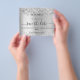 Tenga en cuenta que esta opción Guardar la fecha está en papel de volante y es muy delgada. Los sobres no están incluidos. Para más grueso Guardar las tarjetas de fecha (mismo diseño), por favor visite nuestra tienda. Un moderno y elegante Salven la Fecha para un boda. Un fondo falso plateado decorado con purpurinas falsos. chispas. Personalice y agregue una fecha y nombres. El texto: Save the Date se escribe con un gran guión de estilo escrito a mano.