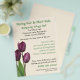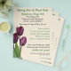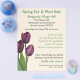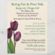 Un volante para clubes de jardín, viveros o mercados con puestos de plantas y fetes de pueblo, con un borde lateral de tulipanes morados sobre un fondo de crema. El texto es una plantilla para cambiar su información, pero se puede agregar más texto si es necesario (también al revés) usando el botón personalizar. Las imágenes también se pueden cambiar.