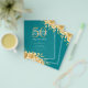 Elegante "Programa de Fiesta de Cumpleaños" con Arreglo Floral en Oro y Verde azulado con texto personalizado.