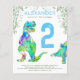 Este T-Rex rugiente y adorable estegosaurio invitan a los fanáticos de los dinosaurios a una fiesta de cumpleaños número 2 para ese pequeño T-Rex que está cumpliendo 2 años. Personalice esta invitación de la jungla jurásica de Tyrannosaurus y estegosaurio agregando el nombre del niño o niña que cumple años, el número del cumpleaños y los detalles de la fiesta y estará listo para una divertida fiesta de cumpleaños de dinosaurios con un audaz tema azul. Todas las especies de dinosaurios son bienvenidas. Ilustraciones de dinosaurios de la era jurásica prehistórica, obra de arte original de la artista Catherine Sweetman.