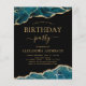 Invitaciones de Fiesta de Cumpleaños con Ágata Geoda Negra y Turquesa Teal Azul y Hoja de Oro - incluye un texto moderno, hermoso y elegante para la celebración especial de cualquier edad, 13, 15, 16, 18, 21, 30, 40, 50, 60, 70, 80, 90 o 100 años.
