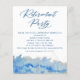 Volante de invitación al presupuesto - 4,5" x 5,6". El papel de valor (mate) es delgado - Actualización a satinado básico para un papel un poco más grueso. Los sobres no están incluidos en este diseño. Debe comprar por separado. Los sobres blancos A6 (6,5" x 4,75") funcionarán con este tamaño. Invite a sus invitados a una celebración de retiro con este folleto de personalizable. Este diseño elegante y elegante es una acuarela pintada a mano en tonos azul claro, azul clásico y azul marino complementada con toques de oro (Relieve metalizado simulado). El diseño abstracto y limpio es perfecto para un hombre o una mujer que esté listo para celebrar el siguiente capítulo de la vida. El texto está en azul clásico y se puede personalizar para su celebración.