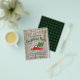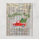 Invitación a la Fiesta de Navidades Rústicos de Camión Rojo Vintage de Budget - La invitación rústica y festiva incluye un camión de cosecha roja acuarela, monogramado con tu original y lleno de árboles de Navidad y luces de cuerda antiguas colgando encima. El fondo de la invitación es madera rústica y templada. La invitación forma parte de una colección. La parte de atrás de la invitación es una manta de búfalo verde. También disponible en rojo.
