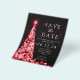 Elegante Fiesta de Navidades / Fiesta de invierno / Fiesta de vacaciones / Fiesta de Navidades corporativos invitación "Guardar la fecha" con árbol de Navidad rojo sobre fondo negro.