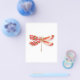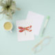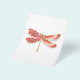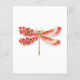 Dibujado artísticamente, dorado, libélula con joyas de color rojo y alas decoradas con rojo, floreciente, cerezo japonés con joyas sobre fondo blanco. Dragonfly de oro.
