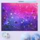 Resumen de fondo rosa azul con puntos luminosos y estrellas.