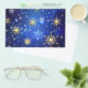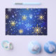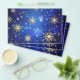Flyer Fondo azul XMAS con copos de nieve dorados