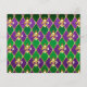 joyería, fondo de Mardi Gras de rombo púrpura y verde, decorado con lirios dorados.