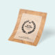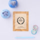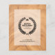 Imagen de madera marrón claro con una corona de laurel negra como logo.