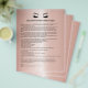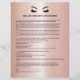 Los formularios de consentimiento para extensiones de pestañas son perfectos para tu negocio de extensiones de pestañas. Este diseño de formulario de consentimiento moderno y sofisticado presenta una ilustración glamurosa y minimalista de las pestañas de una mujer con sombra de ojos rosada dorada, un título y un bloque donde puedes insertar todos los detalles de tu consentimiento informado sobre un fondo de lujo metálico rosa dorado.