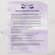 Los formularios de consentimiento para extensiones de pestañas son perfectos para su negocio de extensiones de pestañas. Este diseño de formulario de consentimiento moderno y sofisticado presenta una ilustración minimalista y glamurosa de las pestañas de una mujer, un título y un bloque donde puede insertar todos los detalles de su consentimiento informado sobre un fondo de lavanda lila de acuarela de lujo. ¿Necesita ayuda? Por favor, envíeme un correo electrónico a citronelladesign@gmail.com. Estaré muy feliz de ayudarlo
