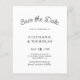Elegante presupuesto, escritura moderna de tipografía Minimalista, boda barata salva los volantes de citas en blanco y negro. Este delicado y sencillo diseño no fotográfico es perfecto para el boda moderno. Presenta caligrafía caprichosa en caligrafía de tipo letras a mano o escritura tipográfica. Fácil de personalizar con los detalles de su boda. Bajo coste asequible ahorra los folletos de boda de fechas.
