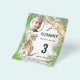 Estos Roaring T Rex y volando pterodáctilo invitan a los fans de Dino a una fiesta de tercer cumpleaños. Un divertido follaje de jungla Jurásica en color agua verde y marrón salpicado dinosaurio 3er cumpleaños fiesta invitación presupuesto para el muchacho que ama los dinos. Personalice este diseño de Tyrannosaurus rex y pterodáctilo con una foto, el número de cumpleaños y los detalles del fiesta y todos estarán listos para un divertido cumpleaños de dinosaurios con temática de dino. Todas las especies de dinosaurios son bienvenidas. Ilustracion de arte original de Catherine Sweetman