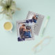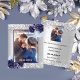 Tenga en cuenta que esta opción Guardar la fecha está en papel de volante y es muy delgada. Los sobres no están incluidos. Para más grueso Guardar la tarjeta de fecha (mismo diseño), por favor visite nuestra tienda. Fondo falso de estilo plateado, decorado con flores azul marino y azul claro, flores y confeti de imitación de plata. Personaliza y agrega tu foto, nombres y detalles del boda.