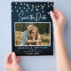 Flyer Foto Save the Date de alumbrado de madera azul de