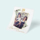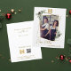 Tenga en cuenta que esto está en papel de volante y es muy delgado. Los sobres no están incluidos. Para saludos más gruesos de Navidad (el mismo diseño) por favor visite nuestra tienda. Celebre la temporada con estilo con este moderno y elegante volante de bienvenida de Navidades, con un falso marco geométrico de fotos dorado adornado con ramas y conos de pino festivo. La parte delantera muestra un saludo de moda con letras a mano "Happy Holidays", perfecto para transmitir buenos deseos. Personalice con su logotipo empresarial, una foto y un nombre para crear un toque profesional. El reverso ofrece la opción de incluir un mensaje personalizado. Agregue su dirección URL/enlace del sitio web al código QR. Ideal para enviar vítores de vacaciones a clientes, socios y empleados.
