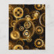 Sin soldadura, metalizado, latón, engranajes dorados sobre un fondo oscuro y oxidado. Estilo Steampunk.