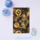 Sin soldadura, metalizado, latón, engranajes dorados sobre un fondo oscuro y oxidado. Estilo Steampunk.