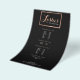 Coordina con la plantilla de la tarjeta de presentación con marco dorado/negro del Rosa de texto con guión de Glam Lashes antes de las 12.00 horas. Un glamuroso y cursivo tipografía "Lazos" en falso oro rosa en esta plantilla de volante de personalizable. Agregue su nombre o nombre comercial para un logotipo personalizado. Diseñado para expertos en extensión de pestañas, técnicos de latigazos, maquilladores y más. Utilice estos folletos para listas de precios, menús de servicio, materiales promocionales y más. © 1201AM CREATIVE