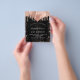 Tenga en cuenta que esta invitación está en papel de volante y es muy delgada. Los sobres no están incluidos. Para invitaciones más gruesas (el mismo diseño) visite nuestra tienda. Un fondo negro. Decorada con goteo de oro rosa, pinturas con goteo y globos. Personalice y agregue un nombre, edad 21 y detalles del fiesta. El nombre se escribe con un guión de estilo con letras a mano