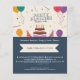 Un folleto de planificador de fiestas que incluía una lista de servicios y decorado con una tarta de cumpleaños, globos coloridos, sombreros de fiesta y confeti. Perfecto para organizadores de eventos como fiestas de cumpleaños para niños o adultos, lanzamientos de productos, baby shower, celebraciones familiares, aniversario de bodas, despedida de soltero, fiestas temáticas, etc.