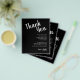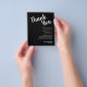 Los folletos de papel livianos de 4,5" x 5,6" con un presupuesto negro asequible incluyen sus detalles en letras blancas de moda. Este lugar es perfecto para colocar los platos en la cena de boda o en la recepción de bodas.