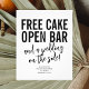 Cita graciosa Free Cake Open Bar y un boda en un lado.