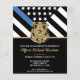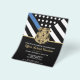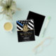 Honre la dedicación y el arduo trabajo de un nuevo agente del orden con esta invitación personalizable para la graduación de la policía. Con un emblema policial y la bandera de la fuerza policial con franjas negras y blancas en negrita y una orgullosa línea azul delgada, este diseño simboliza la fuerza, el servicio y el sacrificio. La invitación está personalizada con el nombre del graduado en letras doradas, lo que la convierte en un recuerdo memorable para amigos, familiares y compañeros oficiales. Perfecta para celebrar la graduación de la academia de policía, promoción o hito en la carrera de un futuro oficial. Invite a sus invitados con estilo y muestre su apoyo al miembro más nuevo de la comunidad de la línea azul delgada.