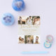 Flyer guardar la fecha 6 fotos collage boda dorado