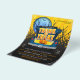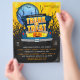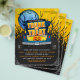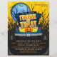 Volante para eventos de publicidad de mercadotecnia de Halloween con maletero azul para autos lleno de caramelos y calabaza, luna azul, valla y árboles. Personalizar A Tu Gusto.