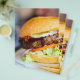 Primer plano de deliciosa hamburguesa fresca con queso y tocino
