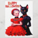 Happy Halloween Little Witch And Her Black Cat