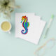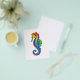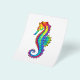 Arco de arcoiris, caballito de mar poligonal sobre fondo blanco. Tatuaje brillante.