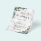 Tenga en cuenta que esta invitación está en papel de volante y es muy delgada. Los sobres no están incluidos. Para invitaciones más gruesas (el mismo diseño) visite nuestra tienda. Impresión de mármol como fondo decorado con vegetación eucaliptus y follaje dorado. Personalice y agregue sus nombres y detalles del boda. Cartas negras.