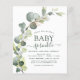 Presupuesto Eucalyptus Greenery Suculent Botanical Watercolor Primavera Género Neutral Niño o Niña Bebé Sprinkle Invitaciones a la ducha sobre fondo blanco - incluye hermosa y elegante tipografía de escritura con hojas botánicas modernas y vegetación para la celebración especial de la Madre a Ser.