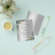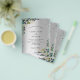 Tenga en cuenta que esta invitación está en papel de volante y es muy delgada. Los sobres no están incluidos. Para invitaciones más gruesas (el mismo diseño) visite nuestra tienda. Fondo falso plateado decorado con vegetación eucalipto, follaje dorado y purpurina de imitación plateado y verde, chispas. Personalice y agregue sus nombres y detalles del boda. Cartas negras.