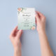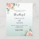 Tenga en cuenta que esta invitación está en papel de volante y es muy delgada. Los sobres no están incluidos. Para invitaciones más gruesas (el mismo diseño) visite nuestra tienda. Un fondo elegante de degradado blanco y verde. Decoradas con flores de oro rosa y rosa rubor, flores de rosa y hojas de eucalipto de color verde acuático, brotes, vegetación y brotes de oro falsos. Personalice y agregue sus nombres y detalles. Fondo: fondo de degradado blanco y verde.