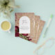 En esta antigua invitación a bodas botánicas con temática arquitectónica destacan rosas rojas profundas de bonito.Hay una variedad de tipos de tarjetas y papel para todos los presupuestos, incluyendo el tradicional papel de cartón 5x7 y papel de volante (precio más bajo). Para verlas todas, vea ' disponible en - todos los productos' en la base de la sección "Acerca de este diseño".
