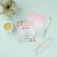 Tenga en cuenta que esta invitación está en papel de volante y es muy delgada. Los sobres no están incluidos. Para invitaciones más gruesas (el mismo diseño) visite nuestra tienda. Rosa de moda dorado y fondo degradado verde. Decoradas con flores de oro rosa y rosa rubor, flores de rosa y hojas de eucalipto de color verde acuático, brotes, vegetación y brotes de oro falsos. Personalice y agregue sus nombres y detalles. Parte posterior: dorado rosa y fondo degradado verde.