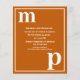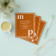 Diseño de tipografía minimalista simple en un moderno y bonito emparejamiento de texto de tipos de letra en negrita en funda inferior para las plantillas de texto con letras monográficas y las plantillas de tipos de letra en funda superior para los detalles fáciles de personalizar en el popular color boda del naranja quemado. Sólo tienes que cambiar las letras y los detalles por derecho propio en la página del producto. Todos los elementos son totalmente personalizables.