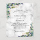 Tenga en cuenta que esta invitación está en papel de volante y es muy delgada. Los sobres no están incluidos. Para invitaciones más gruesas (el mismo diseño) visite nuestra tienda. Impresión de mármol como fondo decorado con vegetación eucaliptus y follaje dorado. Personalice y agregue sus nombres y detalles del boda. Cartas negras. Atrás: agregue la URL de su sitio web boda para RSVP y detalles.