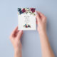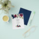 Invitación a la ceremonia virtual de boda de larga distancia en línea con peonías rojas azul marino, blanco y marrón y rosas con tipografía elegante de escritura a mano. Tenga en cuenta que esta invitación está en papel de volante y es muy delgada. Los sobres no están incluidos. Para las invitaciones más gruesas sobre el mismo tema, por favor vea la colección de abajo.