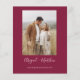 Presupuesto Personaliza este Borgoña Simple y Elegante Doble cara con foto en Invitación trasera con tu mensaje y detalles. Esta invitación de moda incluye una moderna y elegante escritura manuscrita manuscrita de diseño simple y elegante tipografía rosa para la celebración especial del Boda a ser.