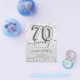 Elegante plantilla de Purpurina de invitación para el 70 aniversario de la fiesta de cumpleaños Silver Balloon. Grandes fiestas de cumpleaños para hombres y mujeres.