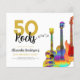 Invitaciones para la fiesta de cumpleaños número 50 con tres diseños geniales de guitarras con acuarela. Una guitarra eléctrica con patrón de llama de fuego y guardapick rojo, una guitarra semiacústica multicolor y una ilustración artística de guitarra acústica clásica psicodélica con tipografía moderna genial personalizada en negro y dorado. Esta plantilla fácil de usar crea la invitación perfecta para celebrar los cincuenta al estilo rock n roll y es ideal para un guitarrista, músico y amante de la música. Cualquier guitarrista te dirá que nunca puedes tener demasiadas guitarras. Este diseño genial y moderno de instrumento musical celebra la energía musical de este maravilloso instrumento y es la forma perfecta de rockear una celebración de cumpleaños número cincuenta. Arte original de la artista Catherine Sweetman.