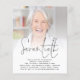 Una excelente alternativa de PAPEL (no cartulina) SIN SOBRES a un tamaño más pequeño de 4,5” x 5,6” y a un precio económico. (Los sobres estándar A6 son el tamaño más cercano que se ajusta). Invitación a la fiesta de cumpleaños número 70 con foto y letra script. Un diseño minimalista para tu fiesta de cumpleaños número setenta, con un elegante guión para el encabezado. Simplemente reemplaza la foto de muestra con tu favorita y personaliza el resto del texto según sea necesario