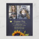 Rústico estilo rural 4 Festejo de graduación de collage de FOTOS elegante invitación FLYER plantilla sobre fondo de tiza azul marino oscuro medianoche con grandes ramos de girasoles dorados. ++++++++++++++++++ Personalice el texto y las imágenes en ambos lados. ++++++++++ La invitación es adecuada para fiestas de graduación de campo rústico en jardín exterior/patio trasero. ++++++++++++++++++++++++++ POR FAVOR LEA ESTO ANTES DE COMPRAR! Esta es una tarjeta asequible para el presupuesto impresa en un FLYER. ++++ Tenga en cuenta que el PAPEL PRESUPUESTARIO ES DELGADO - Puede actualizar para que esta tarjeta se imprima en el material de cartón ++++ ENVELOPES NO INCLUIDOS. +++ Compruebe dos veces toda la información y la ortografía del texto porque recibirá exactamente lo que ve - nadie más comprobará nada antes de imprimir. ++++ Esta tarjeta está diseñada para el tamaño de 4,5" x 5,6". En el funda usted elige otro tamaño de la tarjeta y el texto sale de la página, todo debe ser corregido antes de añadir el producto al carrito. Por favor, pida ayuda al servicio de diseño en vivo.